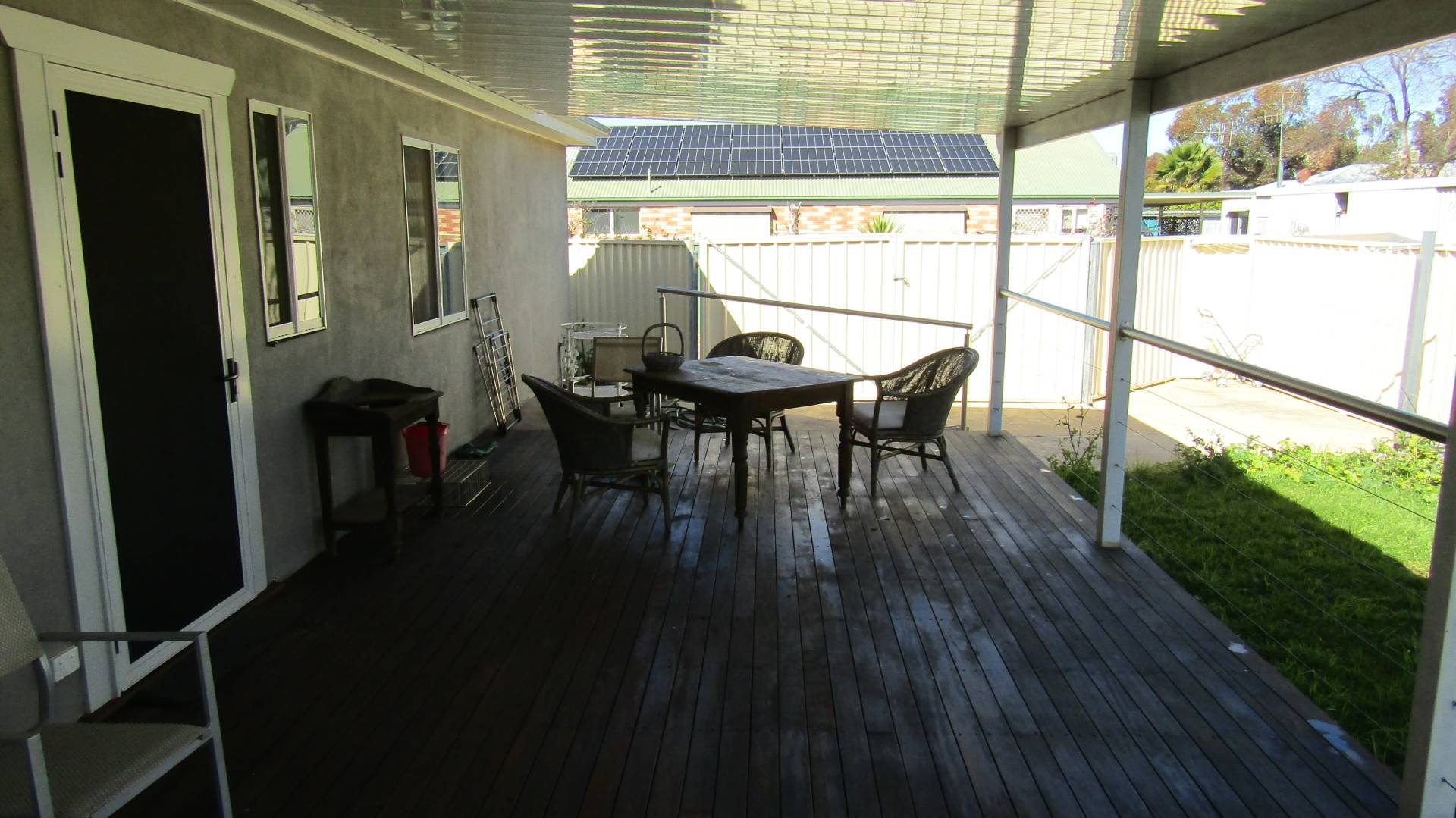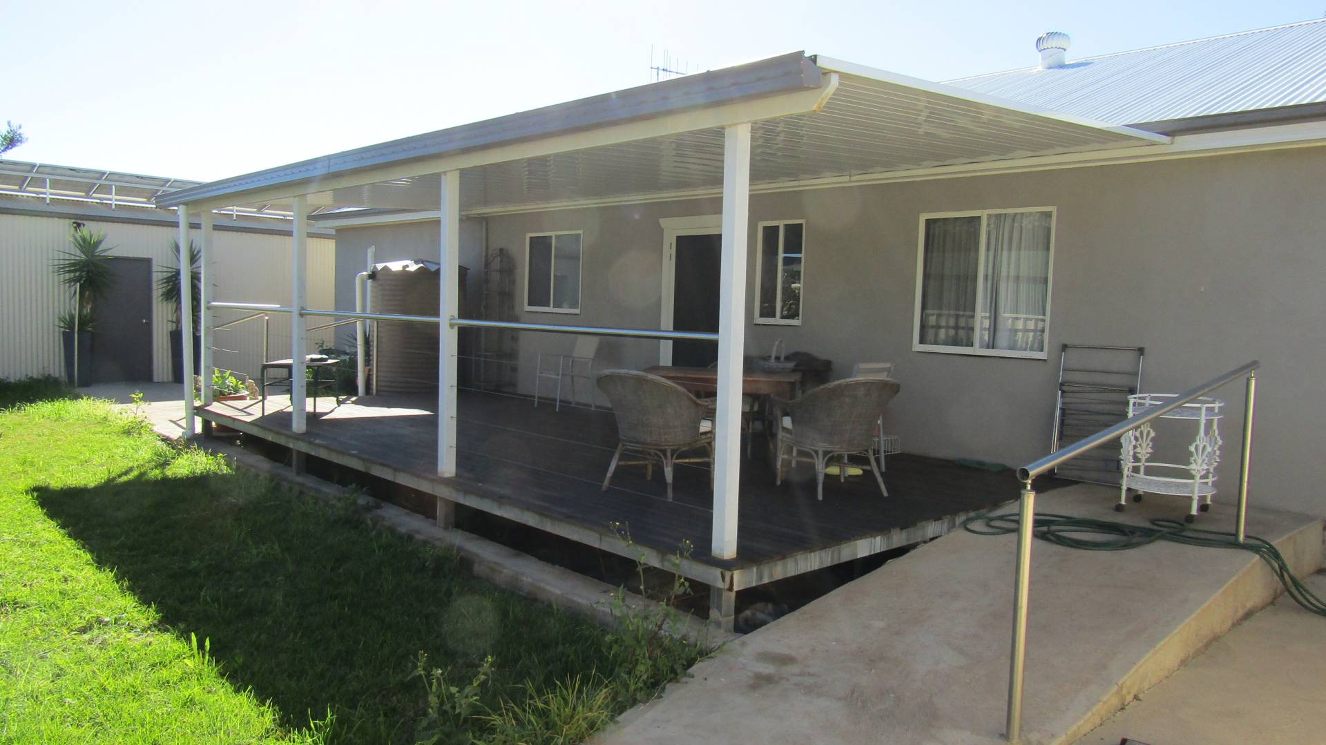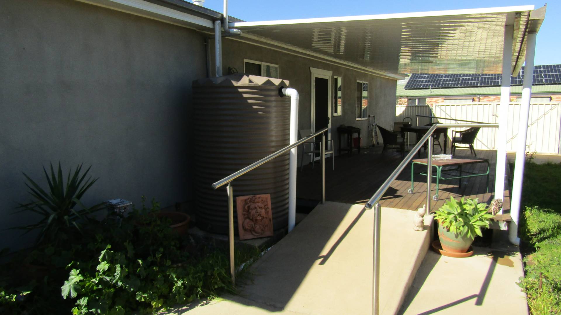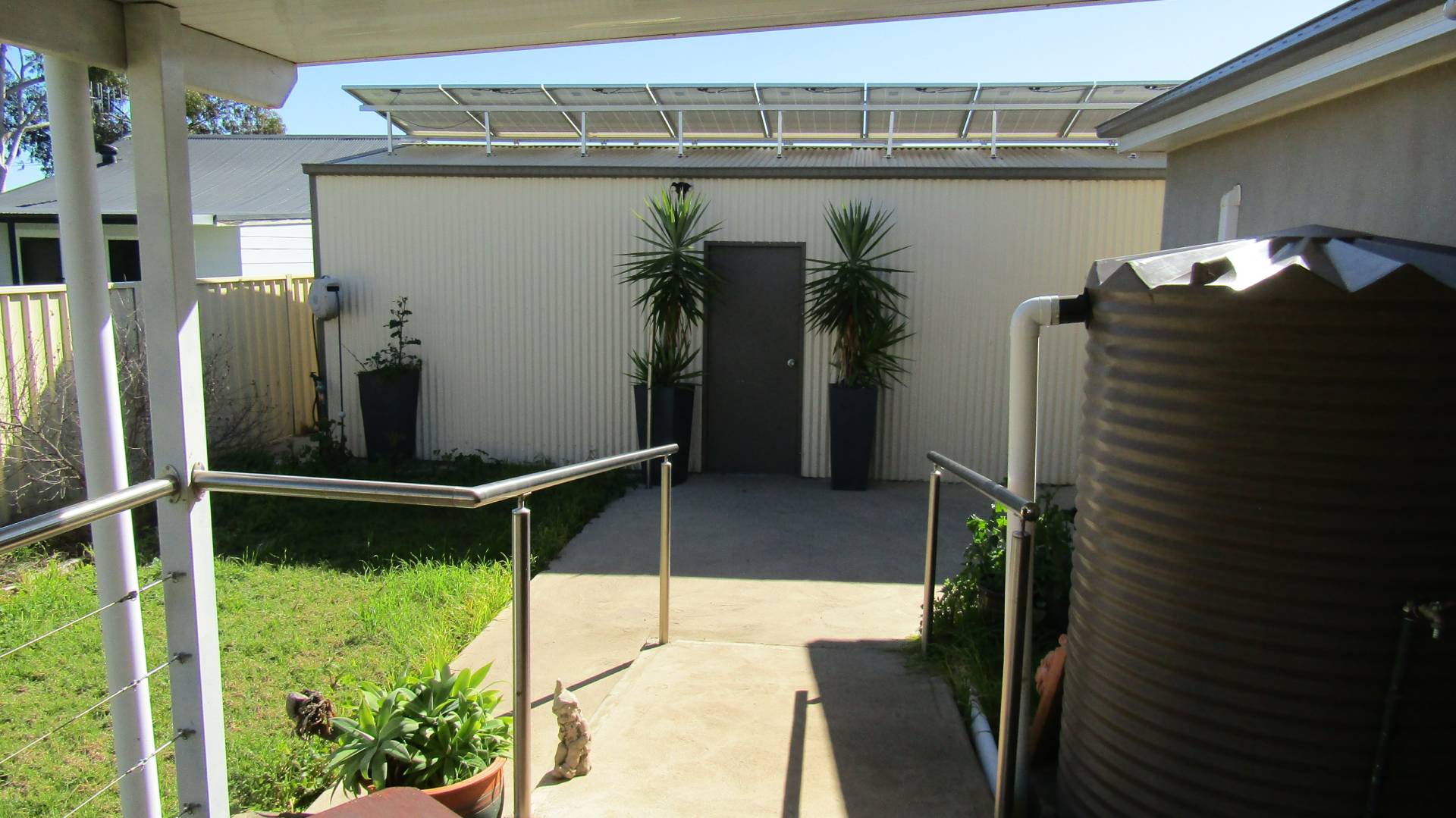 We offer for sale this beautifully appointed 3-bedroom Steel framed home, with rendered exterior & colourbond metal roof. Built only 7 years ago its virtually brand new inside & out. This modern designed home ticks all the boxes with a spacious open plan kitchen, dining & loungeroom area with plantation window shutters, split system air conditioning, ceiling fans & underfloor heating giving year-round comfort. Hard flooring throughout the living areas & hallway. Modern appliances in the kitchen with a dish draw dishwasher, induction cooktop, electric wall oven, gas hot water. Spacious main bedroom with walk in robe, split system air conditioning, ceiling fan, plantation window shutters. Main bathroom is accessible with shower seat & handrails. Ramped access front & back, wide doorways make access a breeze. Second & third bedrooms with ceiling fans & built in robes. Outdoor covered deck, with establish gardens, extra-long single lock up garage with 20 solar panels attached to help reduce energy costs. Approx 550m2 vacant adjacent land. Ideal to build a big shed or a second dwelling or subdivide and sell off (SCTA). Two street frontages & side lane access this is a perfectly suited house for the retiree or wise investor.