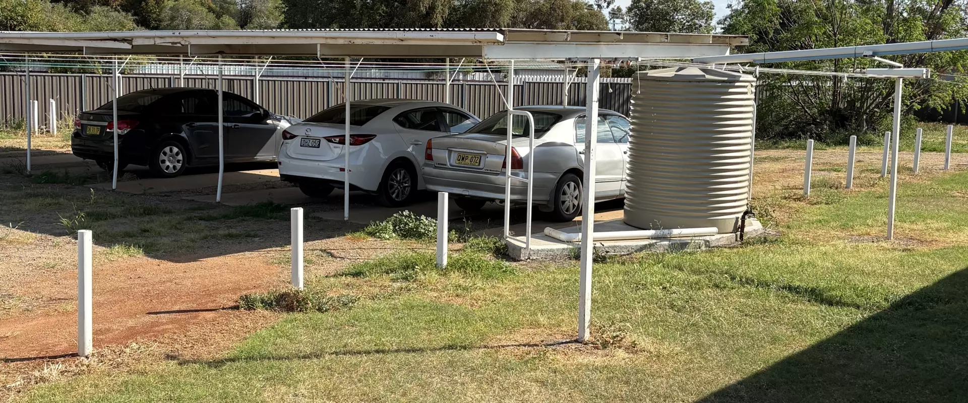 Single car parking space in shared carport.